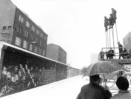 ansahen. Kaiser Wilhelm II., Lenin und Herr Jedermann. Alle drei als Touristen verkleidet, mit Feldstecher und Fotoapparat bewaffnet. Diesem Mauerjahrmarkt mit Pfiff die Krone aufsetzen, das stand nun an. Und es ging alles ganz schnell... Peter Lenk in Berliner RODEO |